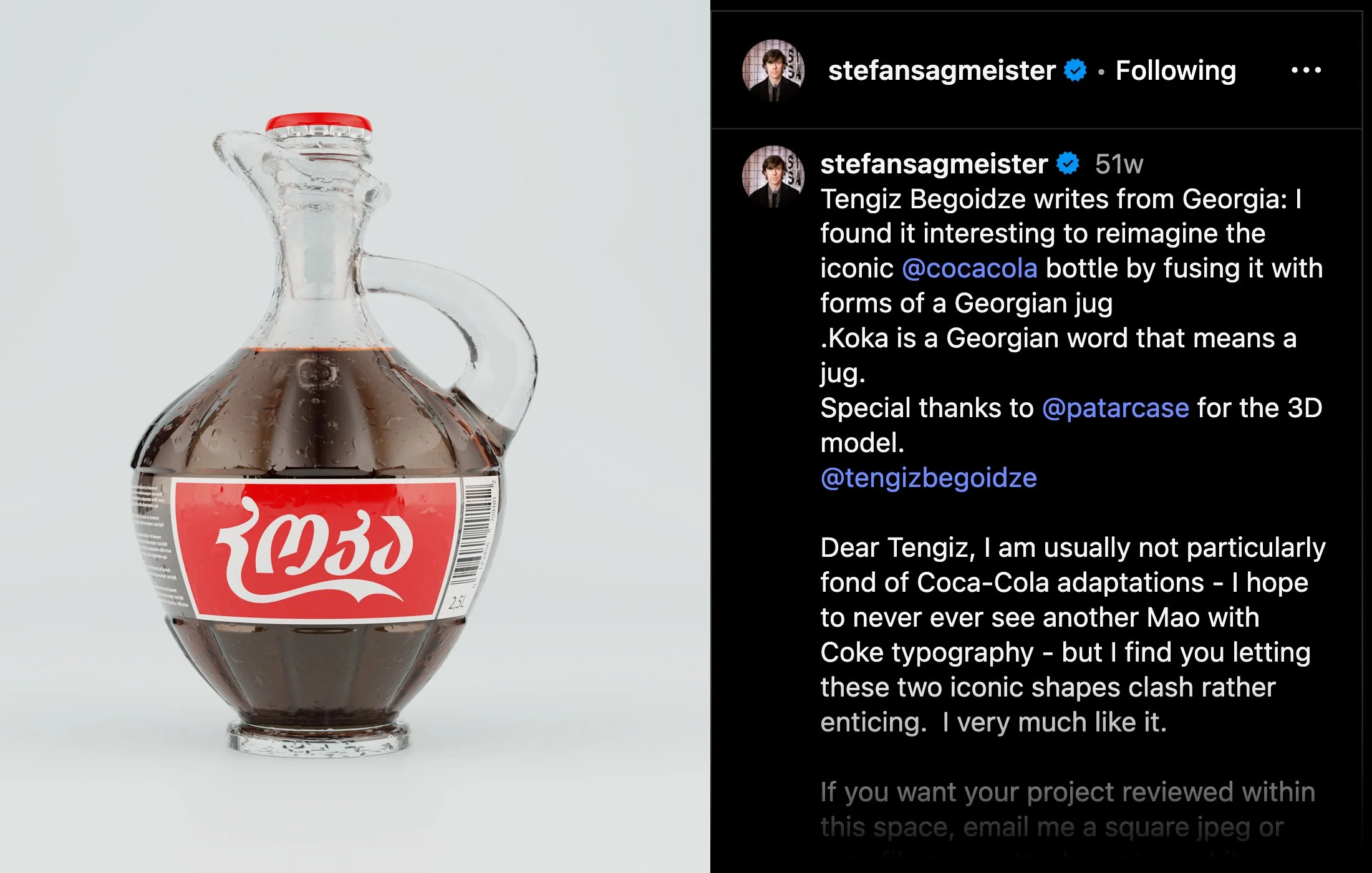 In a sketch from 2021, I found it interesting to reimagine the iconic @cocacola bottle by fusing it with the form of a traditional Georgian jug.